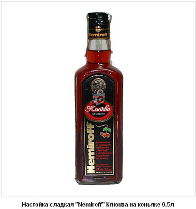 Настойка сладкая "Nemiroff" Клюква на коньяке 21%.