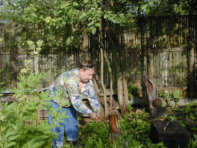 осьма колет дрова для шашлык-машлык