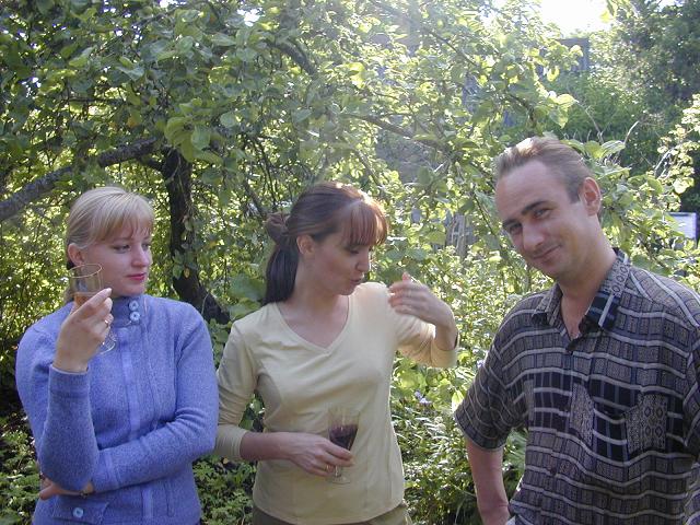 Слева-направо: моя двоюродная сестрица Ольга, моя жинка Лариска, мой друг и сосед по даче Санька