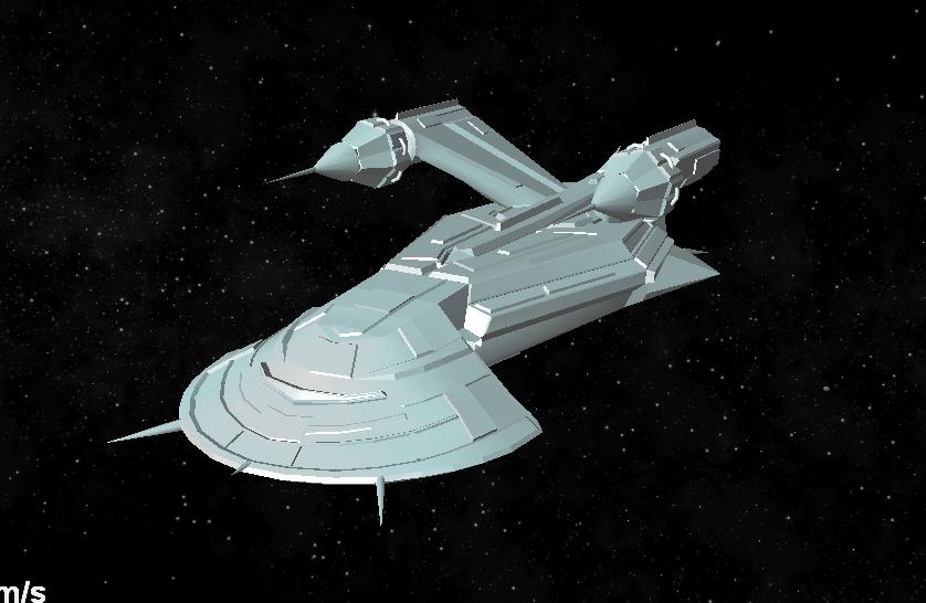 Хороший кораблик. Он вроде как один из самых больших в игре. Если так, то антенны должны быть намного меньше (уже, тоньше). Масштаб, наверное, уже текстурой подчеркнется...