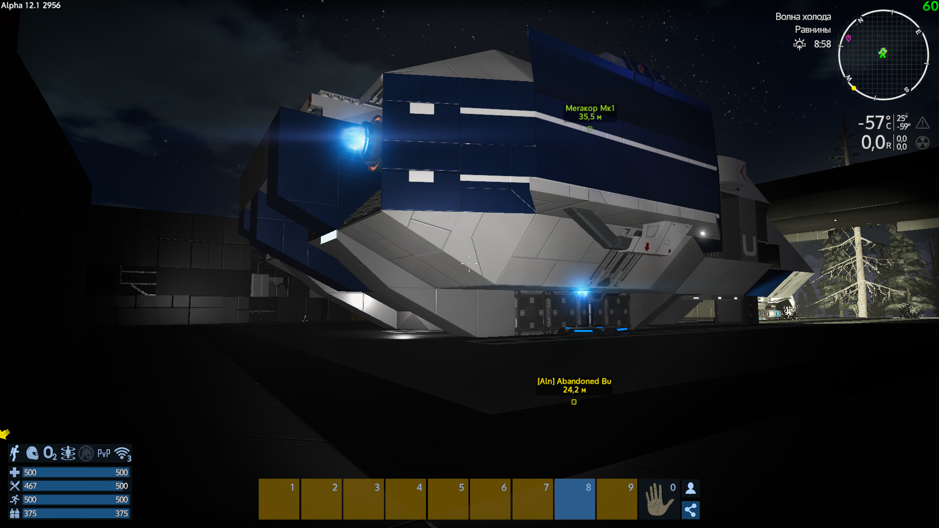 У меня была мысль закопать базу под землю. Но на харде какая-то жесть. Я по уровню даже броню не могу скрафтить. А без брони на глубине в метр-полтора моментальное переохлаждение. Со всеми вытекающими. Да и в сумку по семь бетонных блоков всего помещается...