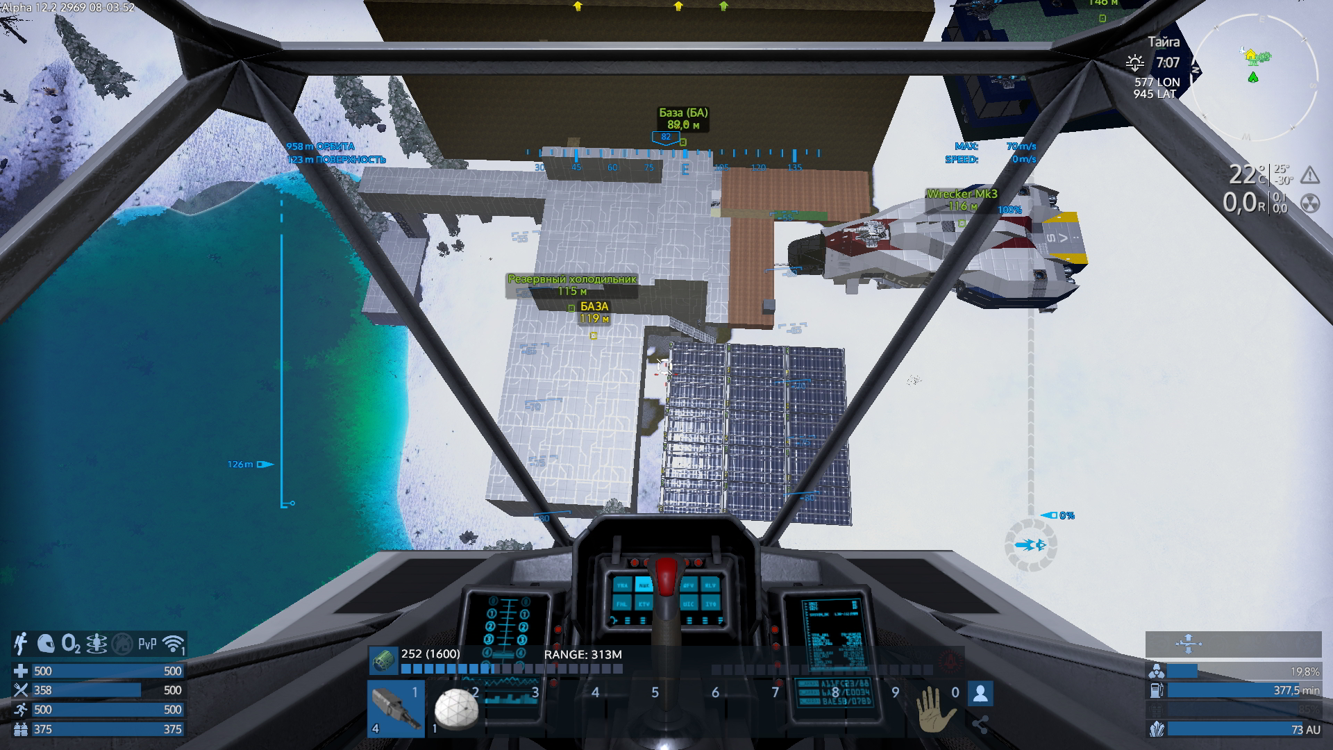 Так что, можно пихать расширители контейнеров, разбирать базу, пихать всё на мазершип и лететь! Пилот
