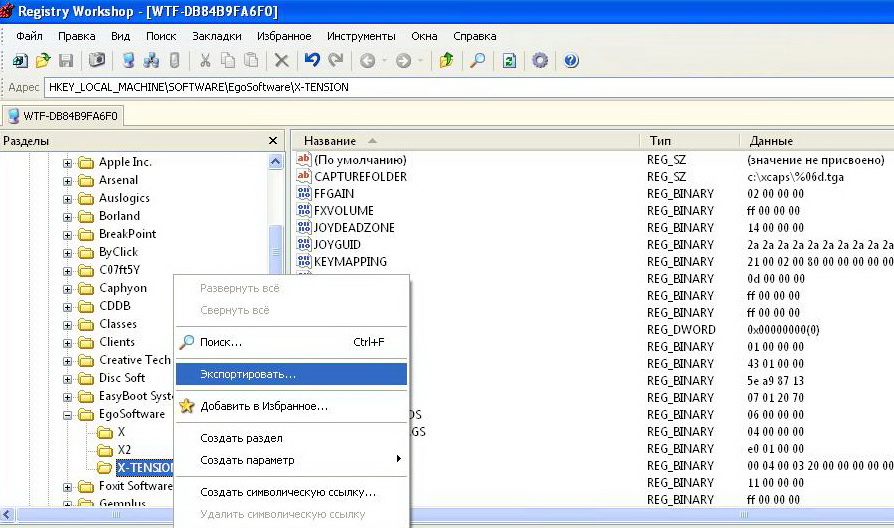 И теперь можно запускать игру, файл "X-TENSION.reg" будет возвращать все утраченные настройки.