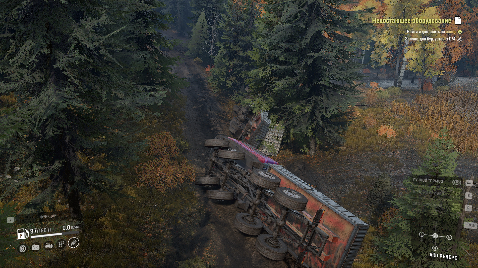 Иногда по миссии нужно довезти груз по влажной грунтовке. Гружёные вы туда проедете, а вот обратно пустые уже не выедете. Делайте ход конём, грузите миссионный груз в прицеп, а себе в кузов кидайте какой-нибудь левый груз для веса и сцепления с дорогой. Тогда обратно выберетесь без проблем.