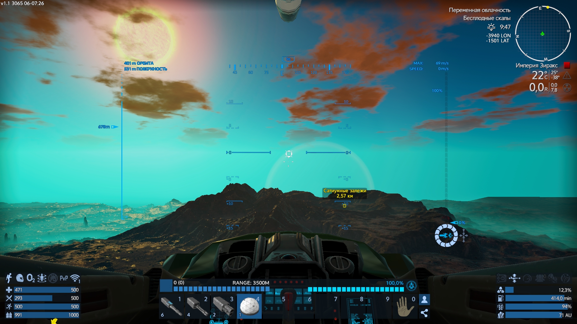 Сделал старт прямо на планете алиенов Жуть жуткая, кругом злые враги. И их много.