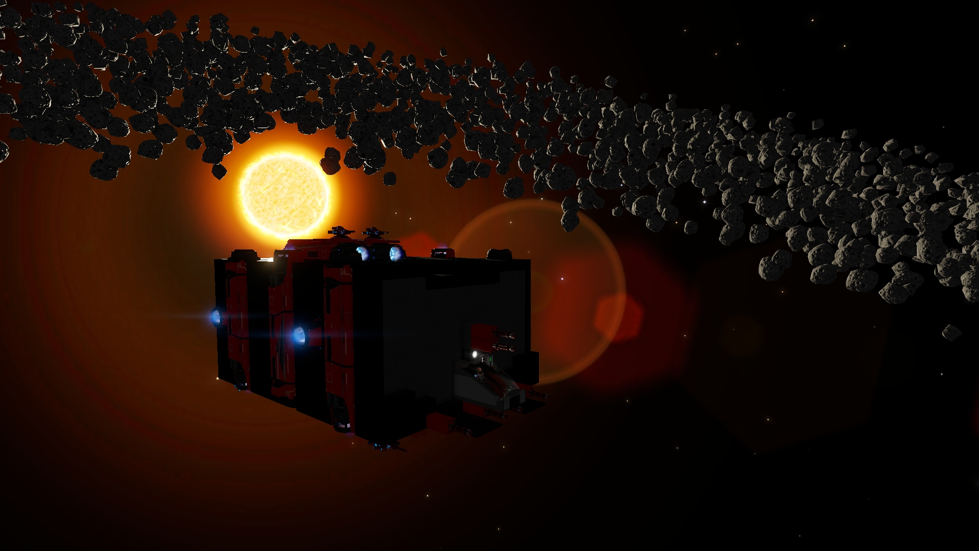 Какая-то гравитационная аномалия получилась при крестовидном расположении основных двигателей по центру корабля (внутри).