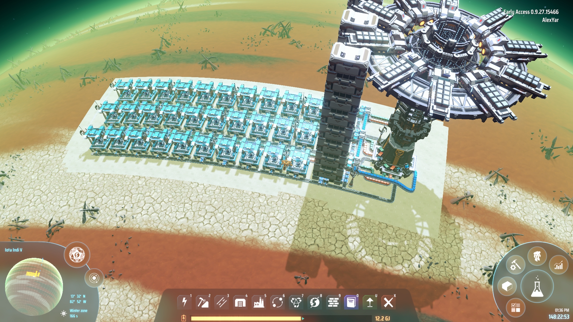 С энергией проблем нет, производство батареек на антиматерии уже промышленное, поэтому на всех планетах вместо солярок просто ставлю десяток-два ядерных солнц на этих батарейках. Это гораздо быстрее и удобнее, и в инвентаре не нужно много хлама возить.