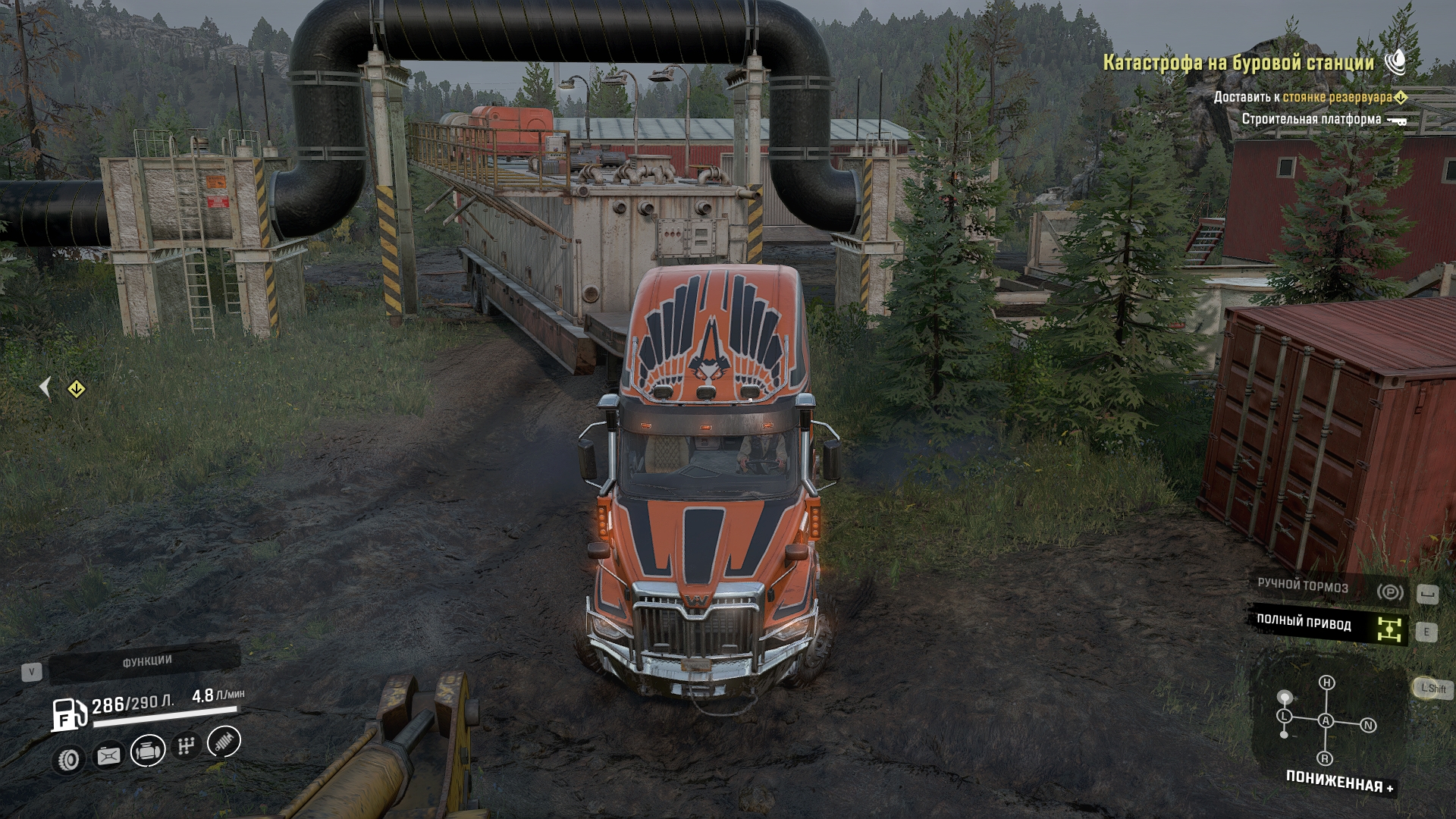 2. Добраться до Kenworth 963 - 2800 цистерна, 510 бак, 140 багажник - 3450л топлива.