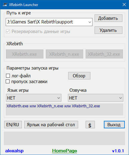 - Запуск через XRebirth_n.exe No-Steam версия)