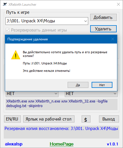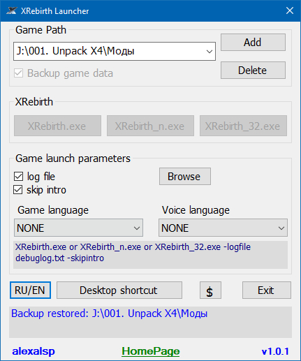 - Ярлык на рабочем столе: XRebirth Launcher.url (при создании)