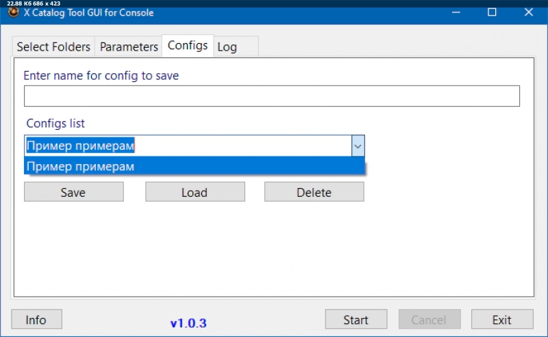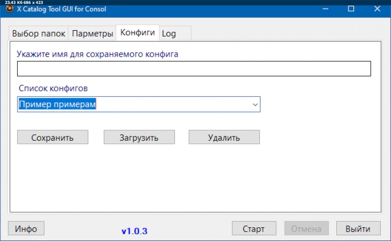 • Конфиги - сохранение и загрузка готовых конфигураций