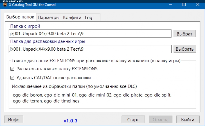 Для чего: Упрощает процесс распаковки файлов игры X-серии (Egosoft) с помощью визуального интерфейса и сохранения настроек.