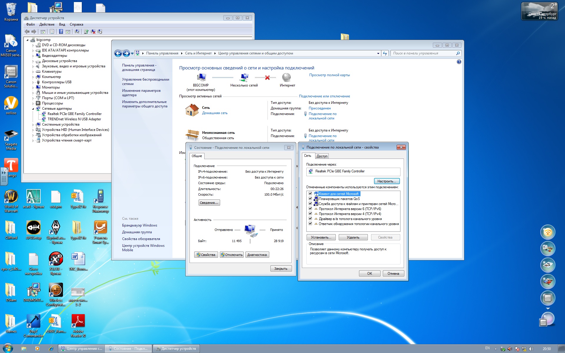 После экспериментов появилась неопознанная сеть, я туплю как её выколотить? Цепляется за внутреннюю сетевуху, как и домашняя сеть, получает по DHCP тот же адрес, изза чего инет отсутствует пока не выключу/включу в винде сетевуху и неопознанная сеть пропадает.