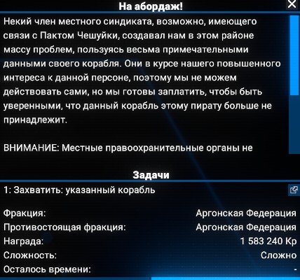 В описании предупреждение о том, что местных охранников не предупредили, возможны варианты. Но проблема в том, что корабль это L-майнер. И летает он строго по аргонским секторам. Так что бы поймать его в стороннем секторе нет сил. Он всегда по одному и тому же маршруту. До точки добычи, и обратно продать на станции. Поймать вдалеке от станций тоже не удается. Сигнал бедствия, и через 20 секунд пол сектора красные. Если убивать всех, то ни деньги ни падение стенда не стоят награды за миссию. Ну и как его выгнать куда-то на окраину? 🤔