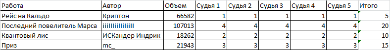 Вот собственно результат работы жюри по литературной части, сами всё видите:
