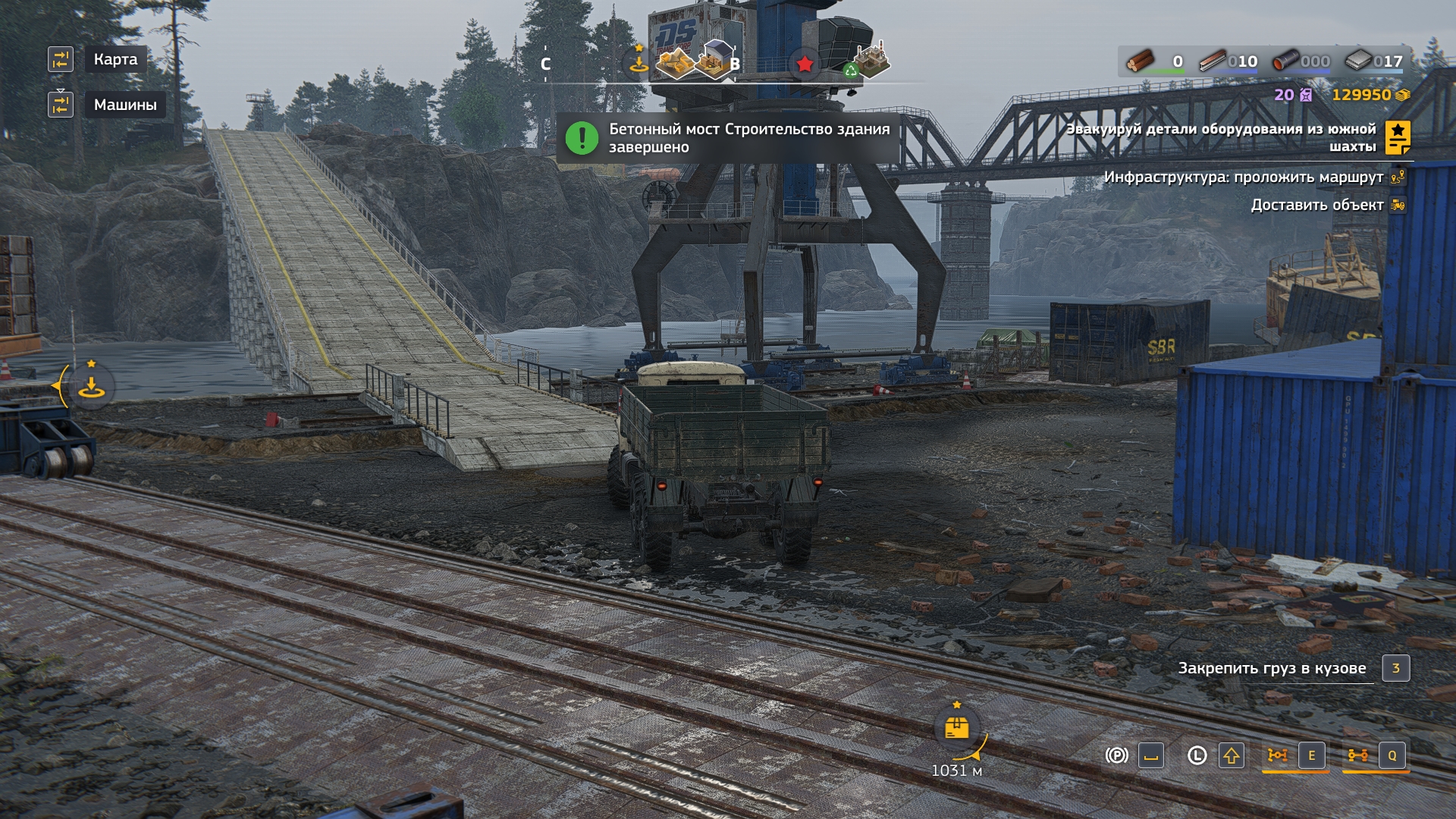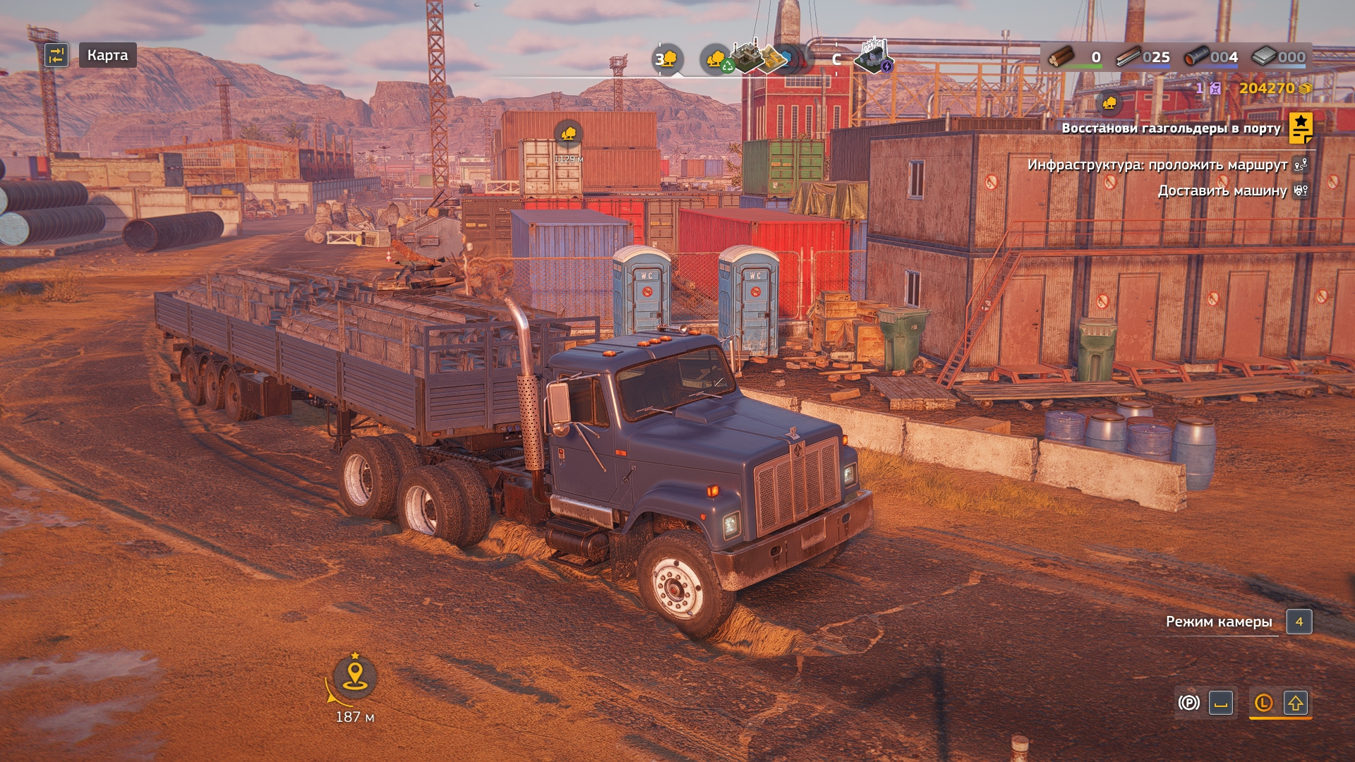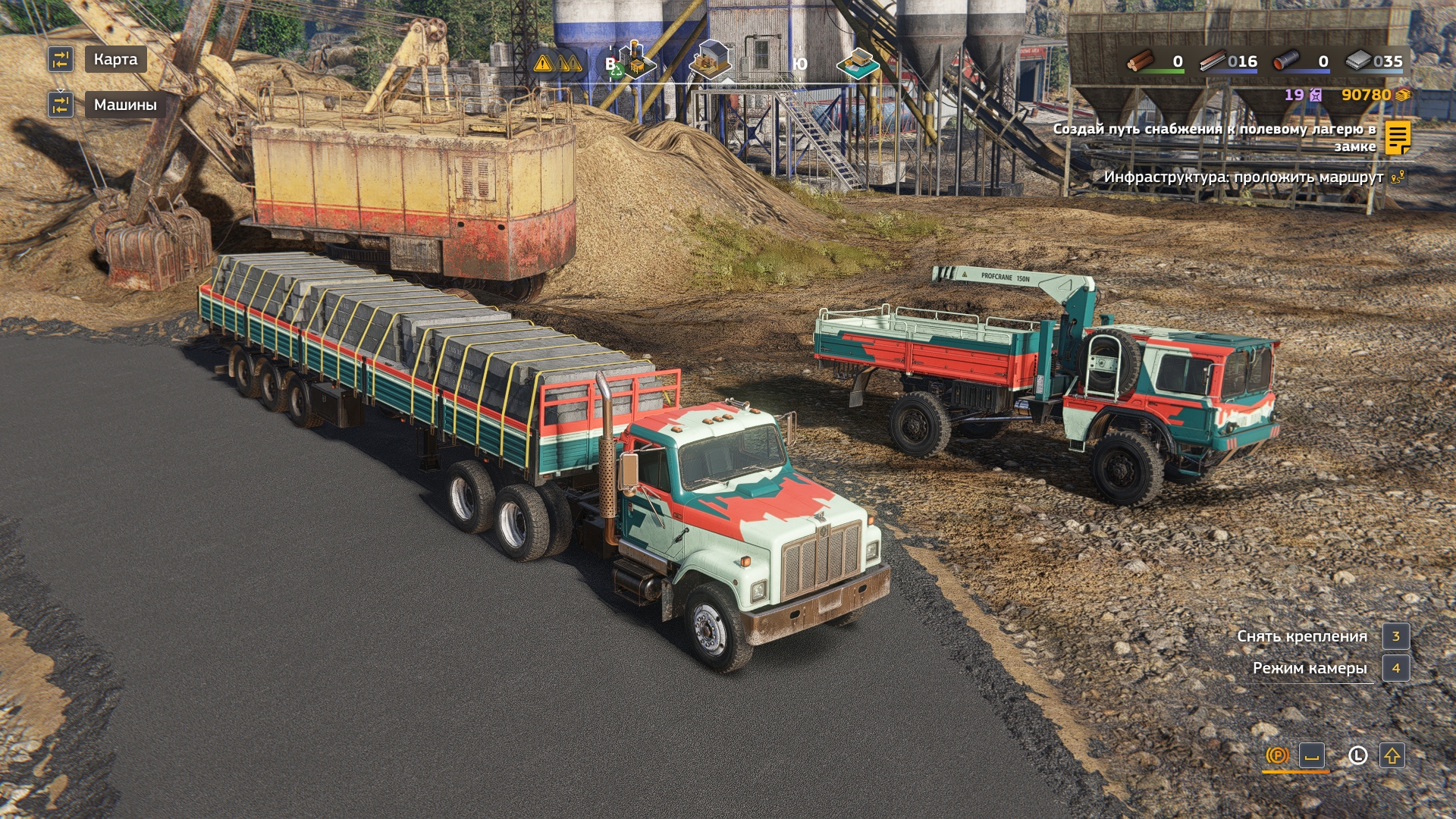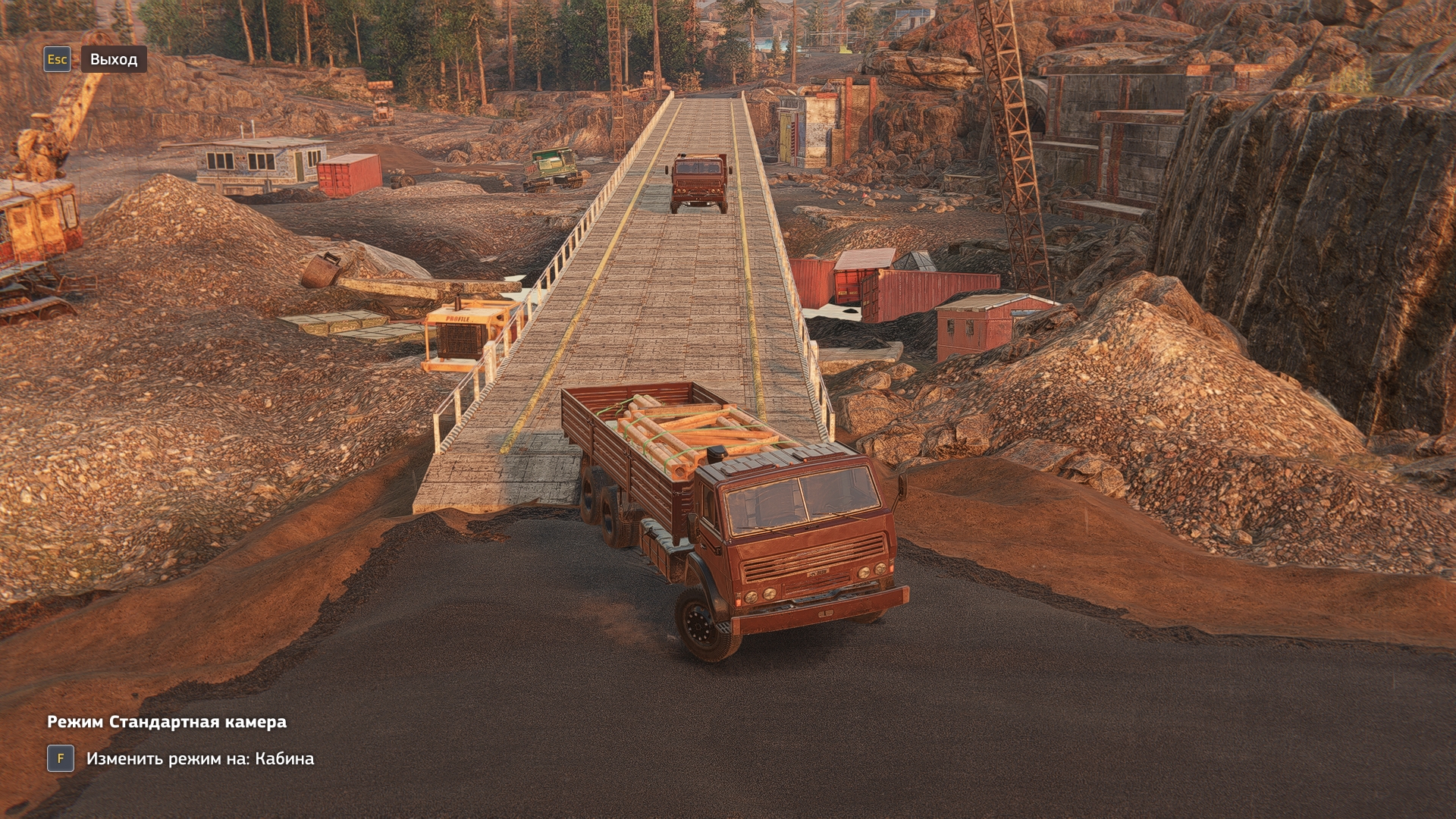 Кстати, лайфхак. Если надо срочно вязкий/скользский участок дороги/подъёма превратить в проездной для шоссейников - необязательно гнать стройтехнику и строить асфальтовую дорогу. Достаточно положить несколько секций моста в режиме настила. Самый дешёвый вариант - из брёвен, на большинстве карт их можно напилить сразу много или в магазине купить. Если где-то конвои разбили дорогу до ям и колей - просто кидаем настил, и готово. Для этих целей можно сразу в начале прохождения региона выгнать из гаража лесовоз и загрузить в него брёвен 20, этого хватит на несколько мостов и настилов.