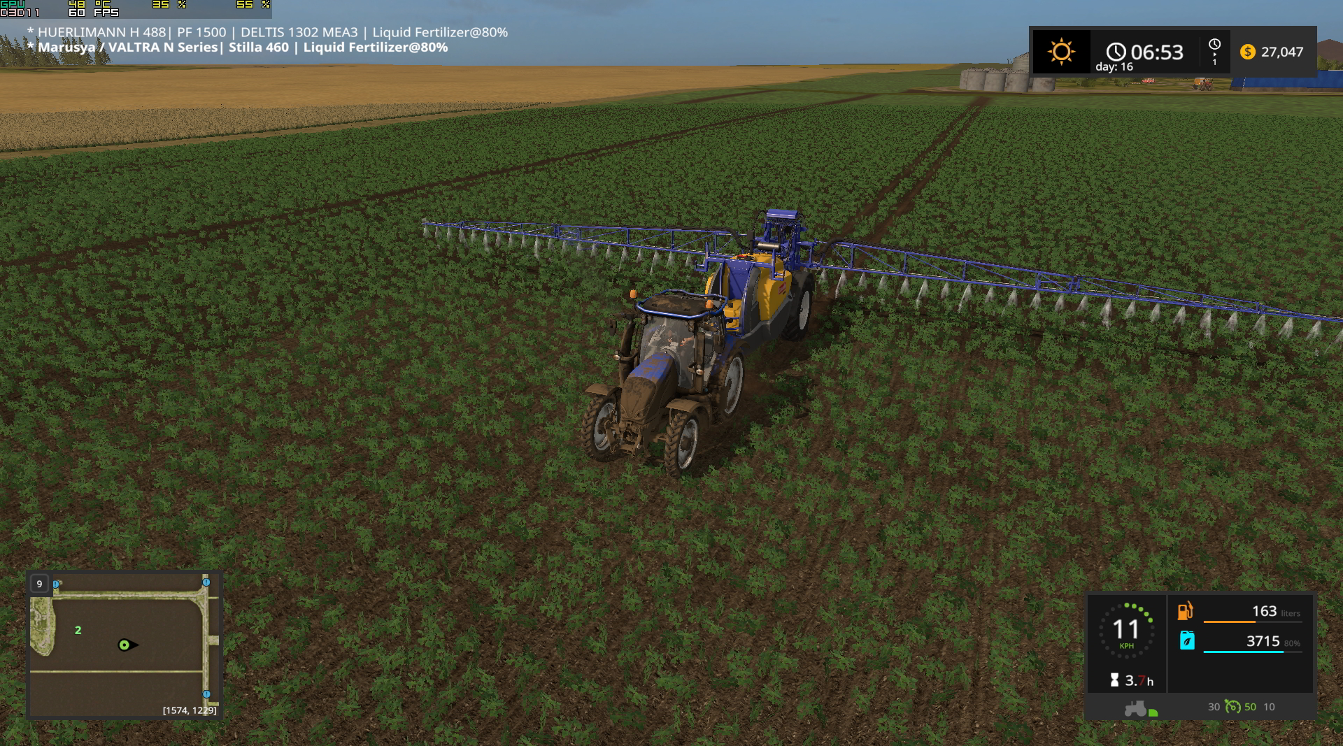 3-е удобрение производится по всходам только поливными машинами с включённым модом Crop Destruction (после этого его можно отключить). Использовать для этой операции курсплей нельзя!