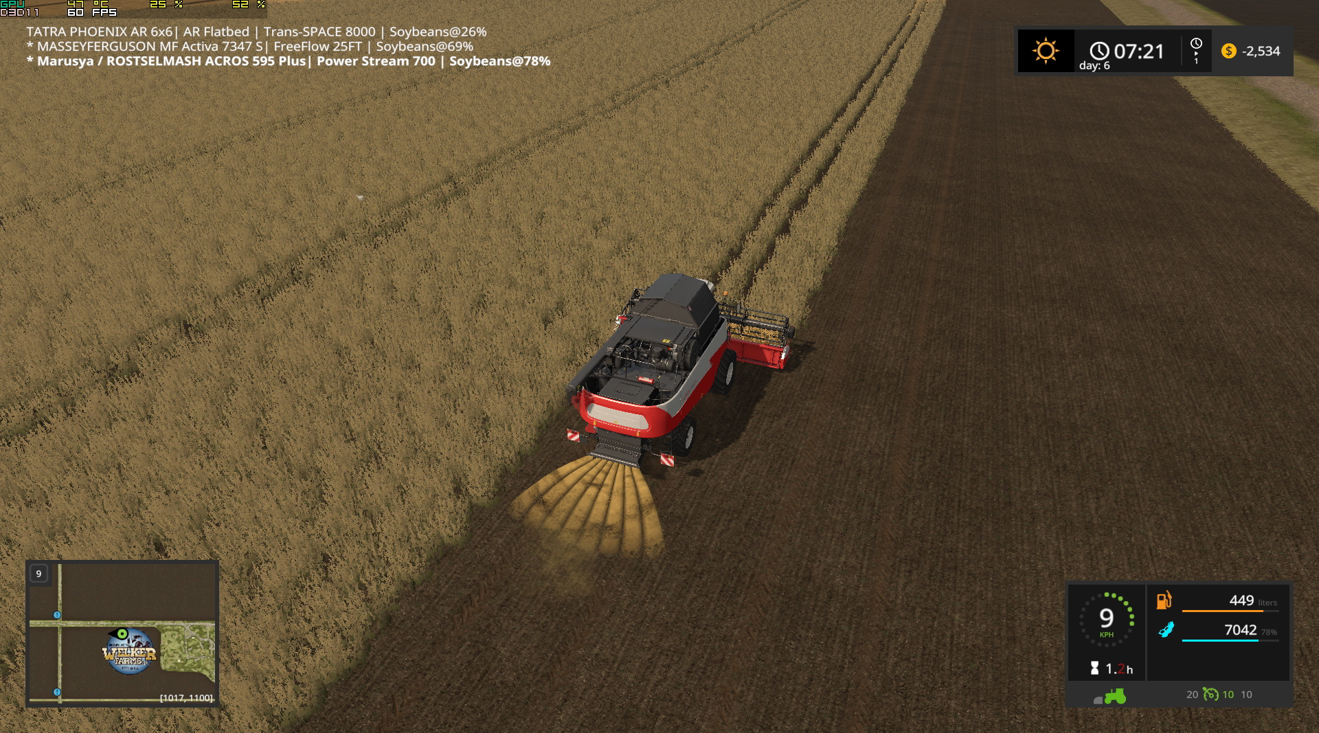 Потом загрузил сохранку, отключил мод, и снова комбайн прогнал. Полосы фиксированные по курсплею, поэтому замеры были более-менее точные. Урожайность показало одинаковую (что с модом, что без).