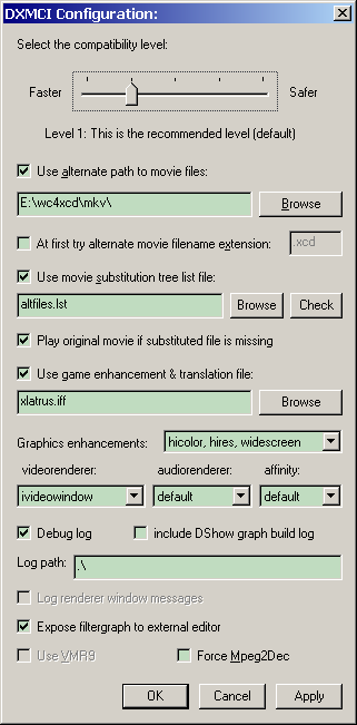 Выкладываю демку directshow-фильтра для вывода субтитров в wing commander'ных кинороликах под обычными кинопроигрывателями. Всё, что нужно, - это распаковать прилагаемый архив wc4dvd-dshow-demo.7z поверх правильно настроенной последней беты, запустить dxmcicfg.exe и выставить галочку: