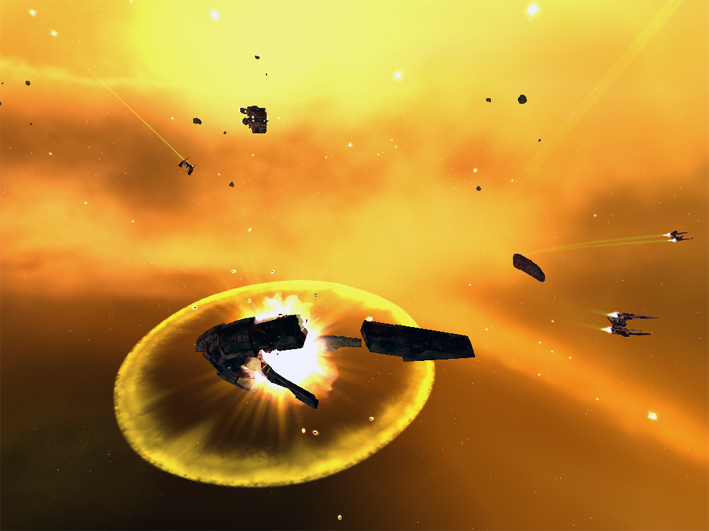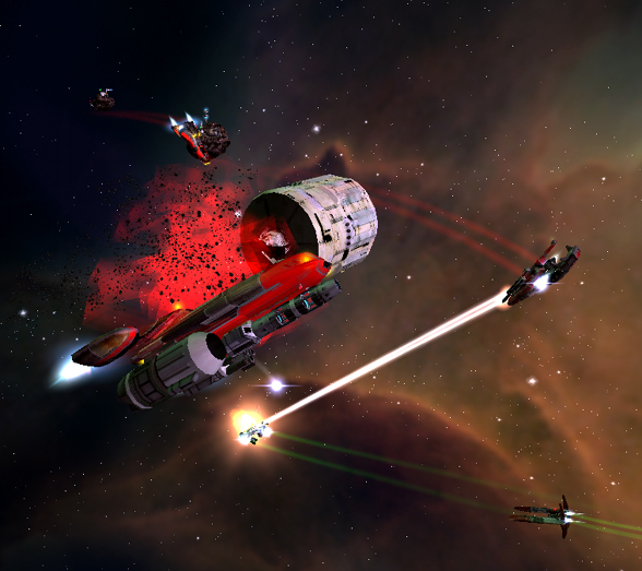 Есть такая фишка как - ракетная атака. Подлетаем так что бы противник нас еще невидел, а мы его уже. В данном случае использовать КК лучше всего, ну или если его нет пересаживать ГГ на ракетный шип. Жмакаем кнопку, назначаем цель и ракеты пошли. Они даже ПРО неуспевают использовать. Выносим "тяжелые" цели, ну а потом добиваем мелочь.
