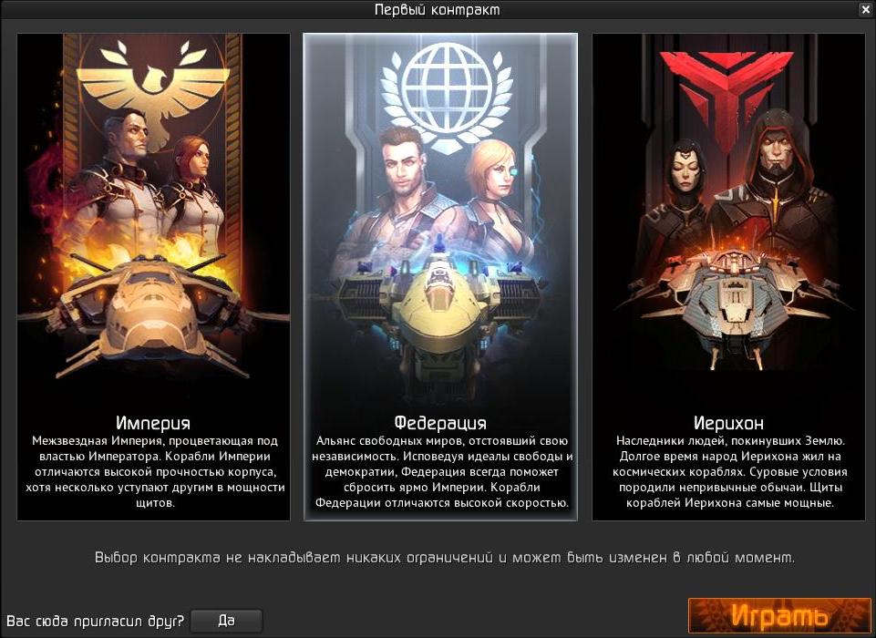 В игре есть три фракции: Империя, Федерация и Иерихон. Корабли каждой из них имеют свои уникальные особенности.