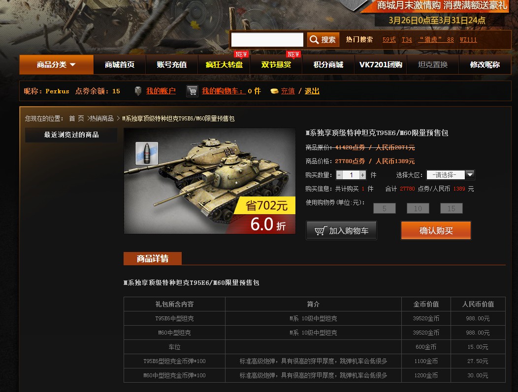 На китайских серверах в продаже появились премиум танки 10 лвл: VK7201, T95E6, M60 по цене около 100-150$ за штуку...