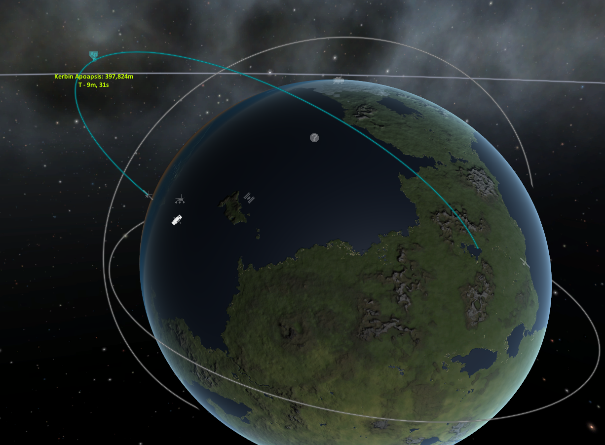 Параллельно с разработкой "Мухи-цокотухи" велись НИОКР по постижению одним ракетным комплексом покрытия всей планеты Кербин.
