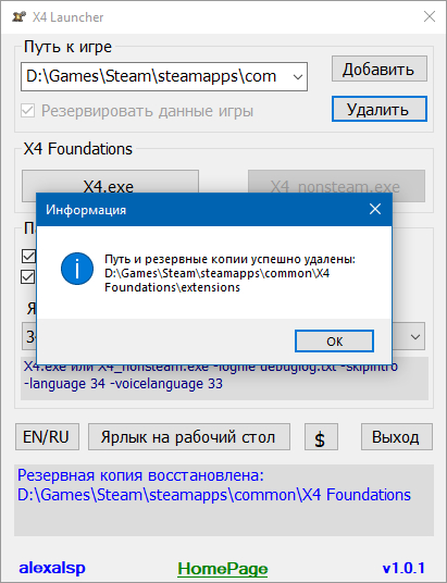 • Запуск через X4_nonsteam.exe No-Steam версия)