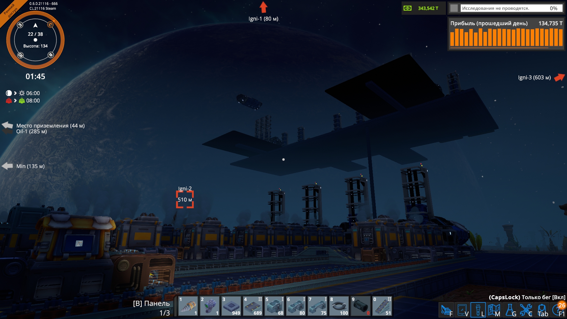 Вышел на плато, когда расходы сравнялись с доходами, из-за чего развитие притормозилось. Очень напрягает выплата по кредиту, отжирая серьёзную часть суточного дохода. Очень помогает продажа игния, компенсируя эту выплату и часть затрат на закупку компонентов. Временами, когда надо было сделать несколько сотен солярок и аккумуляторов (из закупаемых компонентов), ушёл в глубокий минус, наличность резко просела.