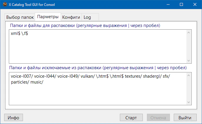 Графическая оболочка для работы с XRCatTool.exe, позволяющая распаковывать игровые архивы (*.cat)