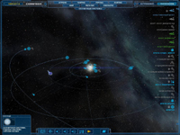 Интерфейс игры ![]() Интерфейс очень удобен. С левой стороны экрана указаны все корабли, которыми вы можете управлять. В самом вверху экрана будет отображена табличка быстрого доступа к вашим группам кораблей. Ниже, вы можете выставить расположения ваших кораблей по разным характеристикам (урон, размер, приоритет, расстояние до противника) Стрелка указывает на направление расположения кораблей по выбранной характеристике.( сверху вниз или снизу вверх). Если количество ваших кораблей больше чем выделенная область, тогда появится кнопка прокрутки. С помощью скролла мыши, вы можете быстро перемещать список кораблей. Аналогично, с правой стороны будут указаны корабли и другие обьекты, которыми вы не можете управлять. Они делятся на враждебные, нейтральные и союзные к вам. Коричневым цветом обозначаются враждебные обьекты и корабли, зеленым – союзные. Остальные – нейтральные к вам. В самом вверху расположены две закладки. Первая дает доступ к оборудованию кораблей и обьектов противника. С помощью сканирования или близкого расположения к противнику вы можете узнать какое вооружение и какое оборудование установлено у этих обьектов. Панель оборудования появляется в центре верхнего края экрана. Она делется на четыре категории. 1.Щиты, при нажатии на эту закладку, вы увидите, какие щиты установлены на обьекте. 2.Оружие, при нажатии на эту закладку, вы увидите, какое оружие установлено на обьекте. 3.Электроника, при нажатии на эту закладку, вы увидите, какое оборудование установлено на обьекте. 4.Двигатели, при нажатии на эту закладку, вы увидите, какие двигатели установлены на обьекте. Индикатор жизни под каждым устройством показывает его целостность. При красном цвете индикатора, данное устройство не работает, но может ремонтироваться. Если устройство затенено( индикатор отсутствует), то оно уничтожено. При нажатии на название устройства, оно начинает мигать. Это означает, что вы выставили приоритет, на уничтожение этого устройства, по отношению к другим. Ваши корабли и малый флот будет стремиться уничтожить такое устройство в первую очередь. Вторая информирует о типе обьекта, также она показывает на сколько процентов вы обследовали этот обьект при его сканировании. Ниже вы можете выставить расположение кораблей и обьектов, по выбранной вами характеристике и направлению. В нижней части экрана расположены кнопки управления вашими кораблями. В левом углу будет указан выбранный вами корабль и его командир. Под ним расположена панель поведения корабля, а также выбор количества подаваемой энергии на отдельные устройства корабля. Дана возможность подключать ракеты и торпеды при обычной атаке. 1. Агрессивное поведение-корабль активирует щит, подходит на расстояние выстрела, атакует всеми орудиями и бомбит шлюпки. 2. Оборонительное поведение – корабль использует лучшее тактический двигатель, РЭП и РЭКП. Сближается с врагом на расстояние выстрела, Поднимает щит, в шлюпки не стреляет. 3. Поведение Стелс – корабль использует системы комуфляжа. Необнаруженный не активирует щита и орудий. 4. Подчиненое поведение – корабль поднимает щит, управляется прямыми командами, не задействует оборудование автоматически. Правее находится панель ремонта( вы можете выставить приоритет починки устройств и орудий), информационная панель, панель ручног